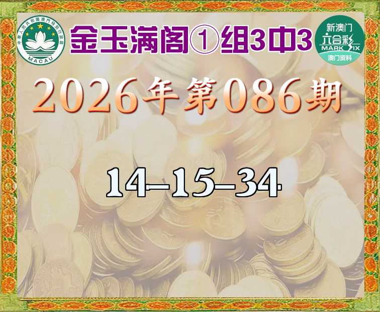 086期:【金玉满阁】 🍃①组3中3🍃【14-15-34】