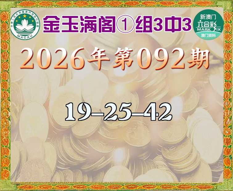 092期:【金玉满阁】 🍃①组3中3🍃【19-25-42】