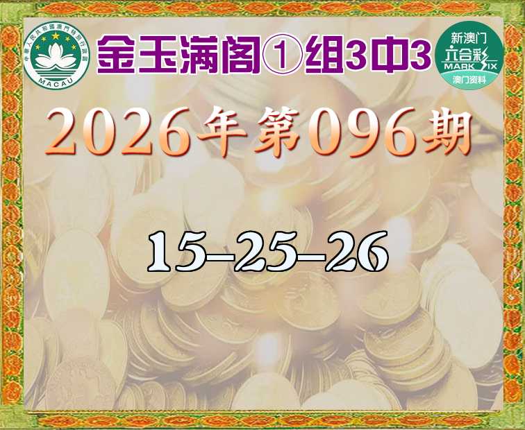 096期:【金玉满阁】 🍃①组3中3🍃【15-25-26】
