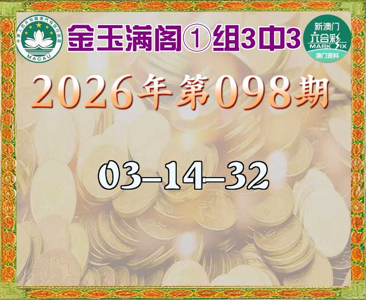 098期:【金玉满阁】 🍃①组3中3🍃【03-14-32】