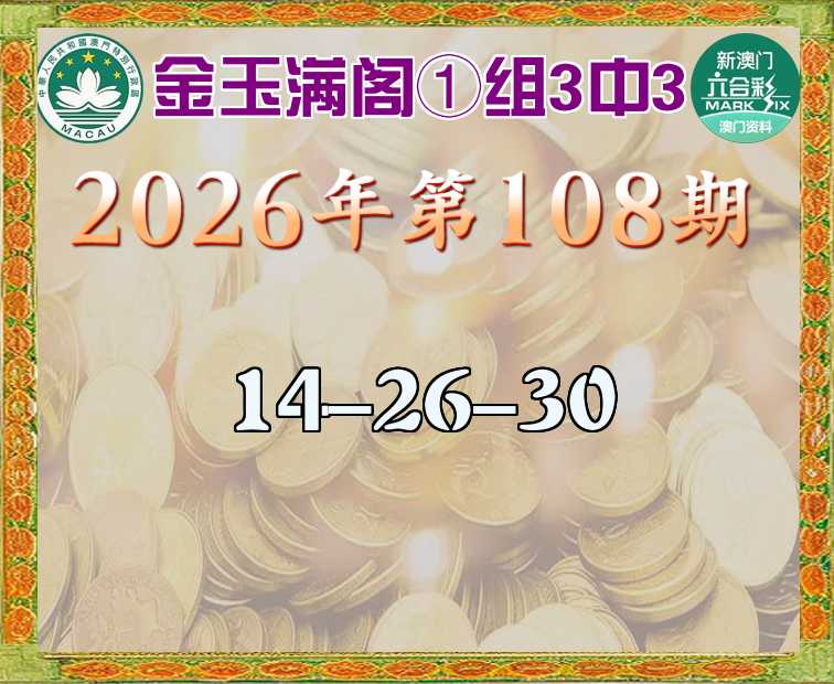 108期:【金玉满阁】 🍃①组3中3🍃【14-26-30】